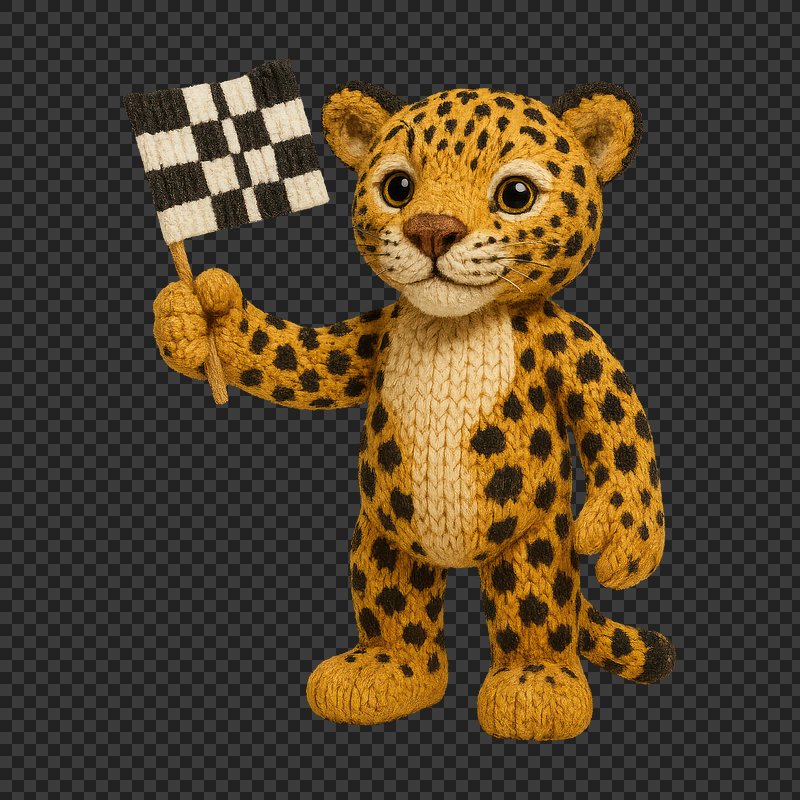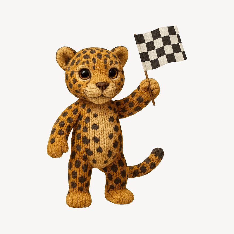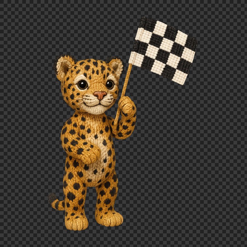 PNG Knitted cheetah holding checkered flag. https://www.rawpixel.com/image/24477955/png-knitted-cheetah-holding-checkered-flagView license