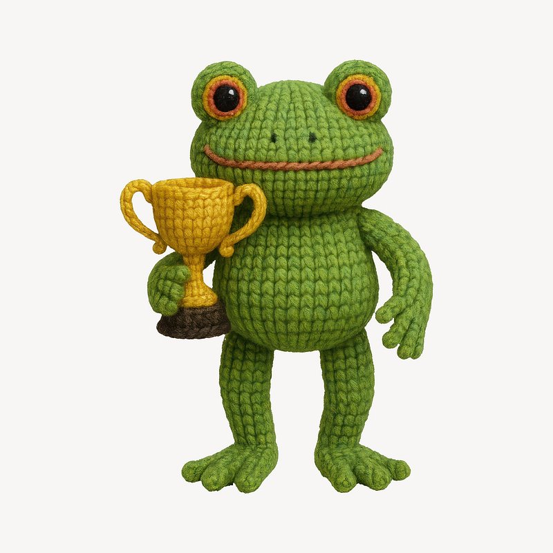 Crochet frog holding trophy https://www.rawpixel.com/image/24534420/crochet-frog-holding-trophyView license
