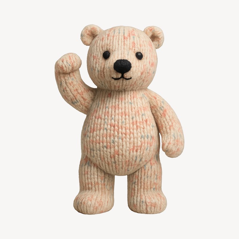 Cute knitted teddy bear waving https://www.rawpixel.com/image/24606299/cute-knitted-teddy-bear-wavingView license