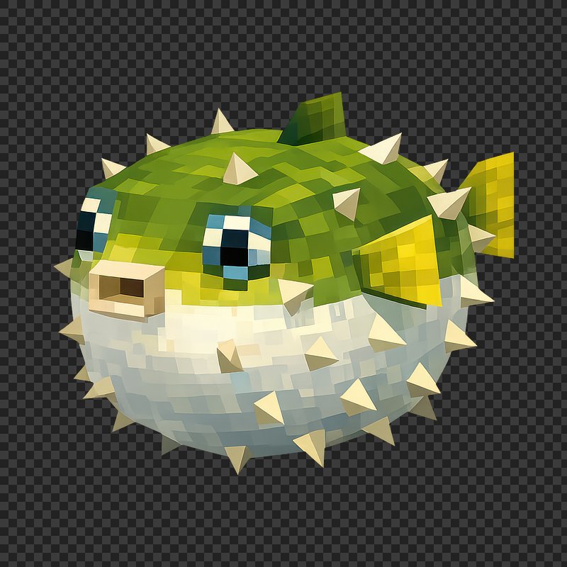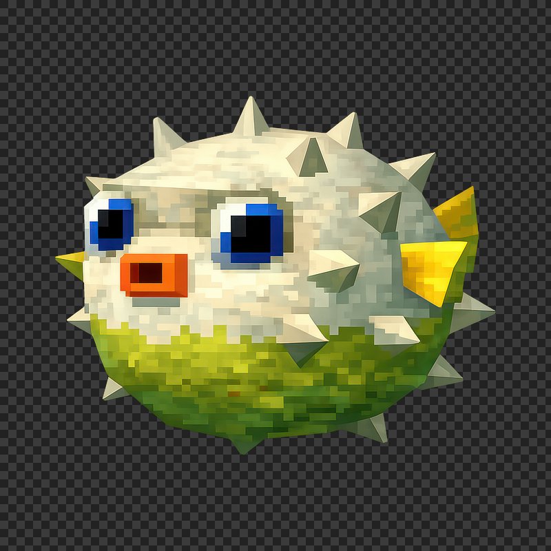 PNG Pixelated pufferfish with spikes. https://www.rawpixel.com/image/25894494/png-pixelated-pufferfish-with-spikesView license