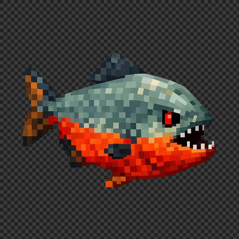 PNG Pixelated piranha fish illustration. https://www.rawpixel.com/image/25894298/png-pixelated-piranha-fish-illustrationView license