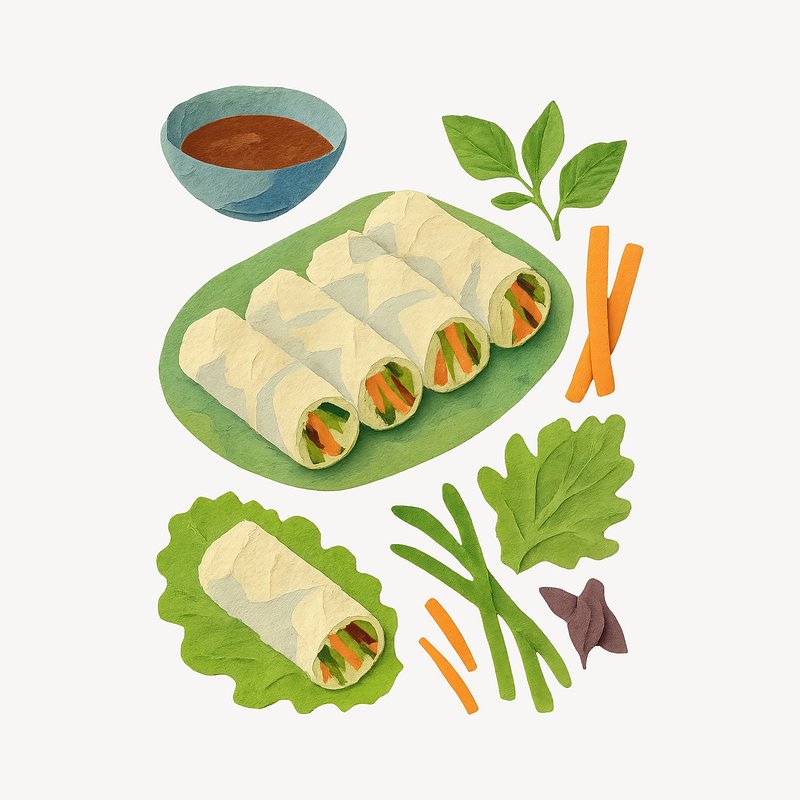 Fresh vegetable spring rolls illustration. https://www.rawpixel.com/image/22259471/fresh-vegetable-spring-rolls-illustrationView license