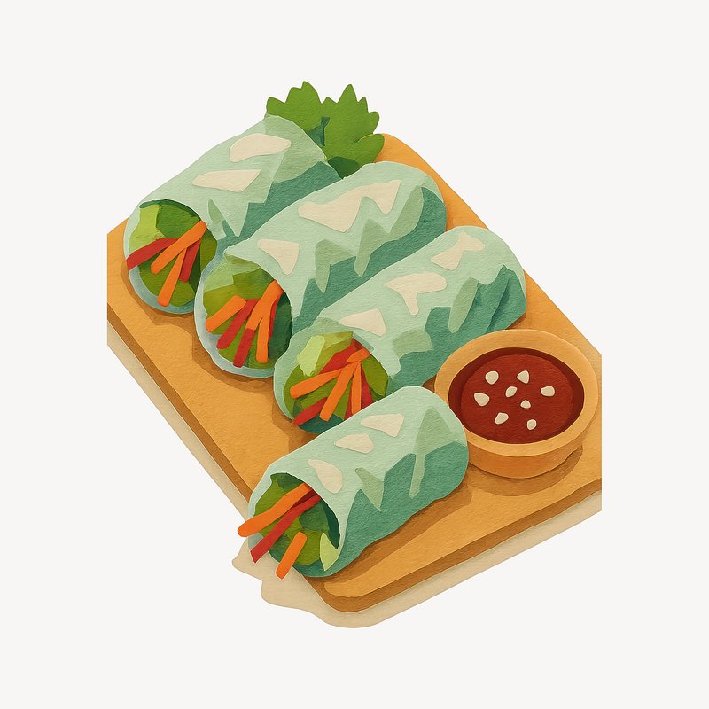 Vietnamese spring rolls illustration https://www.rawpixel.com/image/20647911/vietnamese-spring-rolls-illustrationView license