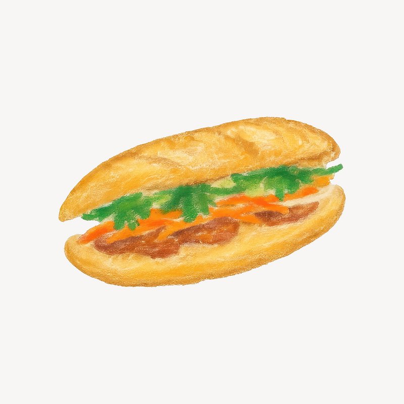 Delicious Vietnamese sandwich illustration. https://www.rawpixel.com/image/21694298/delicious-vietnamese-sandwich-illustrationView license
