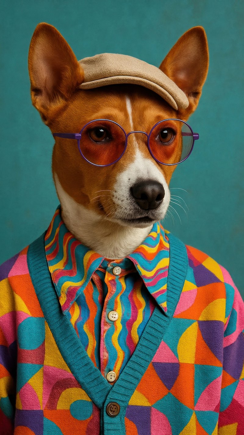 Stylish dog in colorful attire https://www.rawpixel.com/image/17849308/stylish-dog-colorful-attireView license