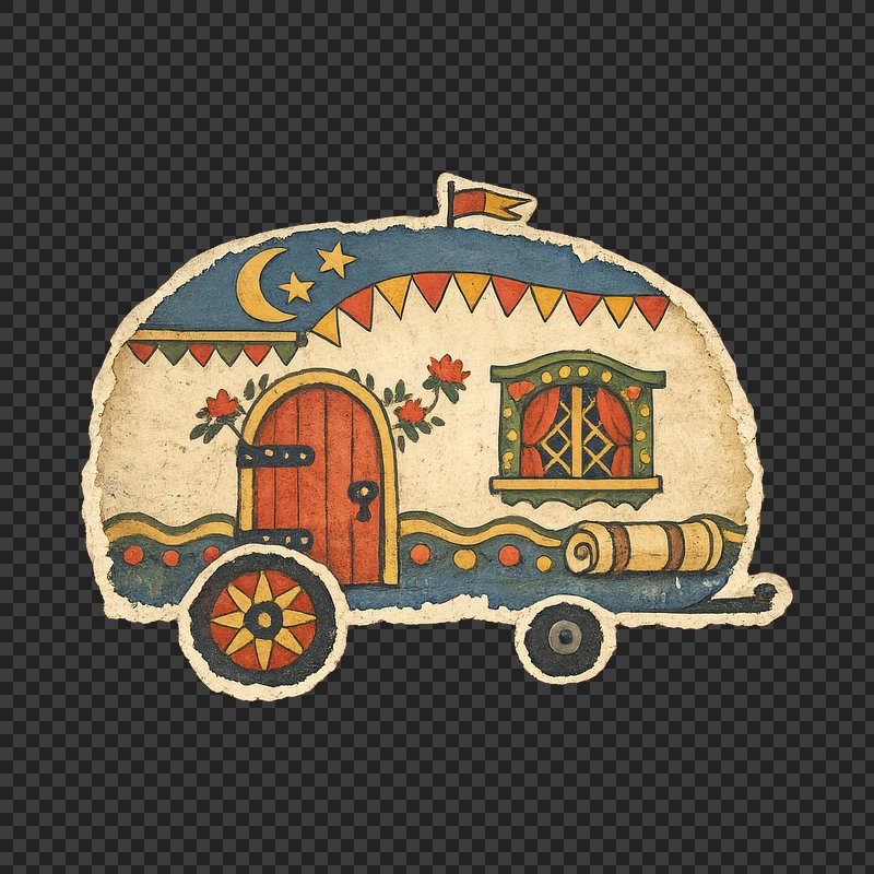 PNG Vintage caravan with whimsical design. https://www.rawpixel.com/image/25396241/png-vintage-caravan-with-whimsical-designView license