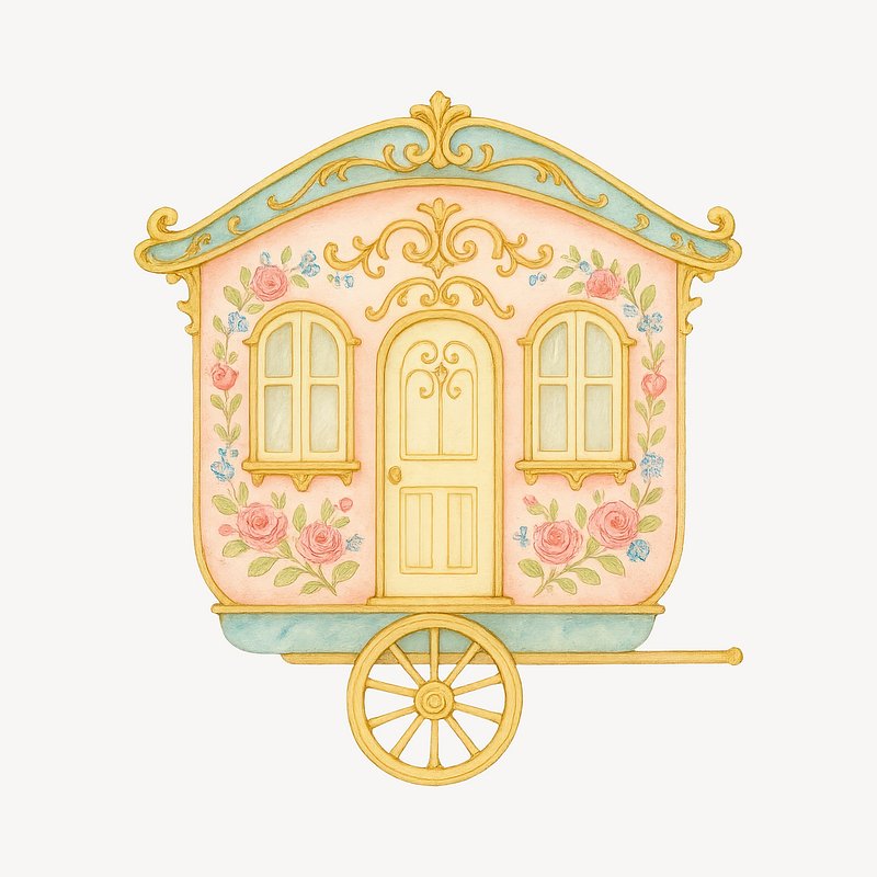 Whimsical floral gypsy caravan illustration. https://www.rawpixel.com/image/19570415/whimsical-floral-gypsy-caravan-illustrationView license