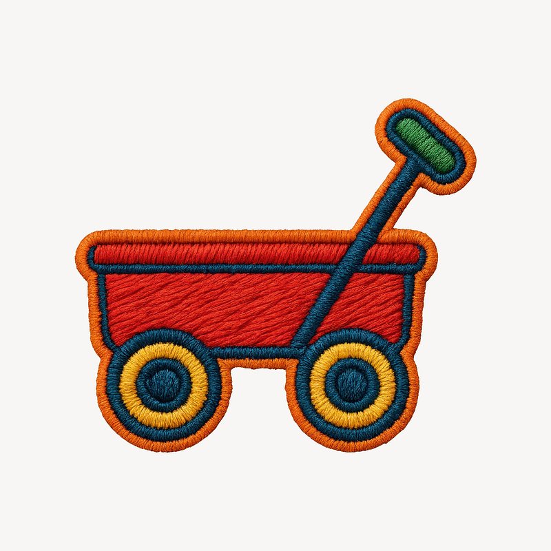 Colorful embroidered toy wagon patch. https://www.rawpixel.com/image/22091053/colorful-embroidered-toy-wagon-patchView license