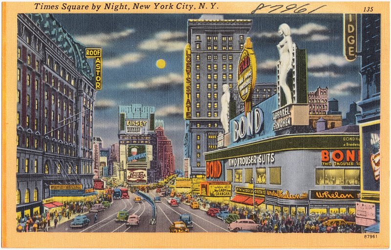 New York skyline at night, looking under Brooklyn Bridge, New York City (1930–1945) chromolithograph. Original public domain… https://www.rawpixel.com/image/10542840/image-texture-moon-artsFree Image from public domain license
