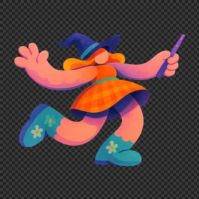 PNG Whimsical witch with wand https://www.rawpixel.com/image/23987717/png-whimsical-witch-with-wandView license