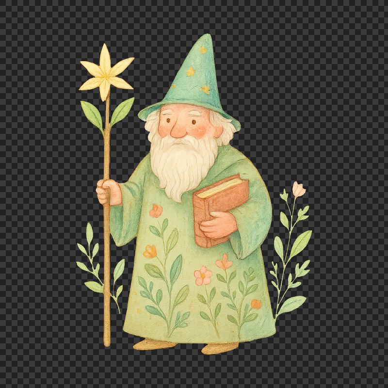 PNG Whimsical wizard with floral elements. https://www.rawpixel.com/image/23296167/png-whimsical-wizard-with-floral-elementsView license