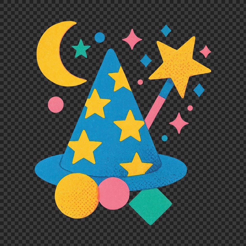 PNG Colorful magical wizard hat illustration. https://www.rawpixel.com/image/23070115/png-colorful-magical-wizard-hat-illustrationView license