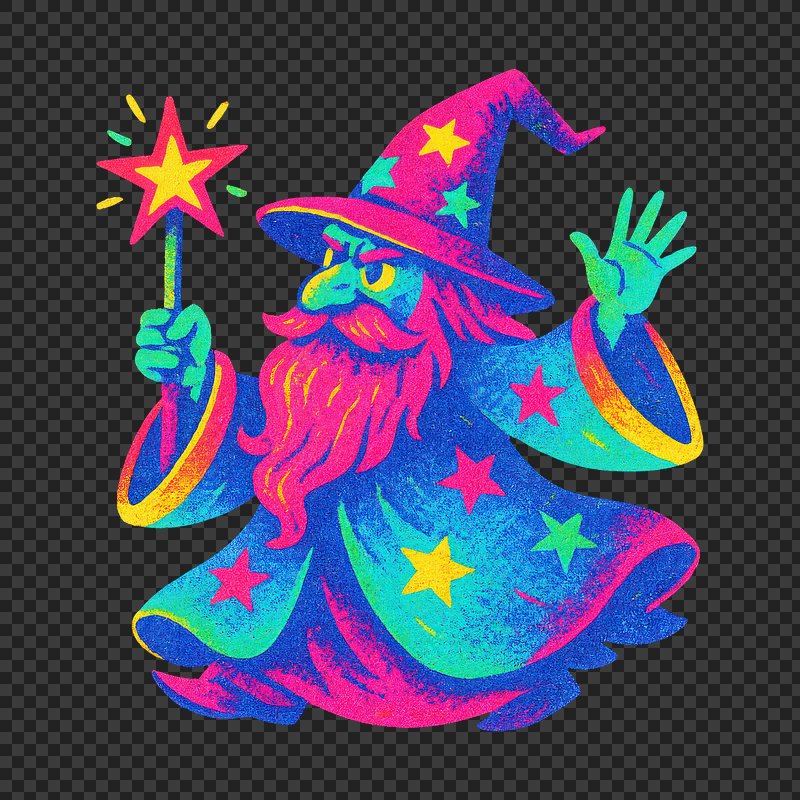 PNG Colorful wizard with star wand https://www.rawpixel.com/image/21942898/png-colorful-wizard-with-star-wandView license