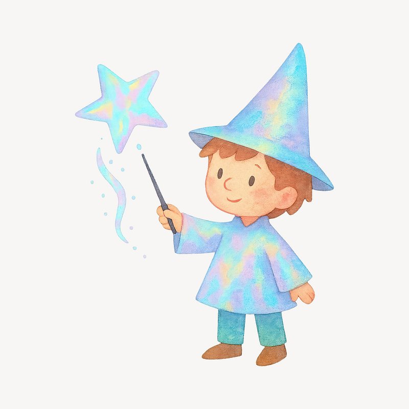 Whimsical wizard conjures magical star. https://www.rawpixel.com/image/20746665/whimsical-wizard-conjures-magical-starView license