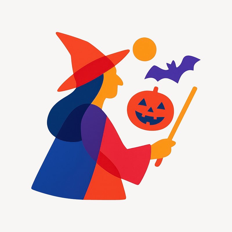 Colorful witch with Halloween elements. https://www.rawpixel.com/image/21794232/colorful-witch-with-halloween-elementsView license