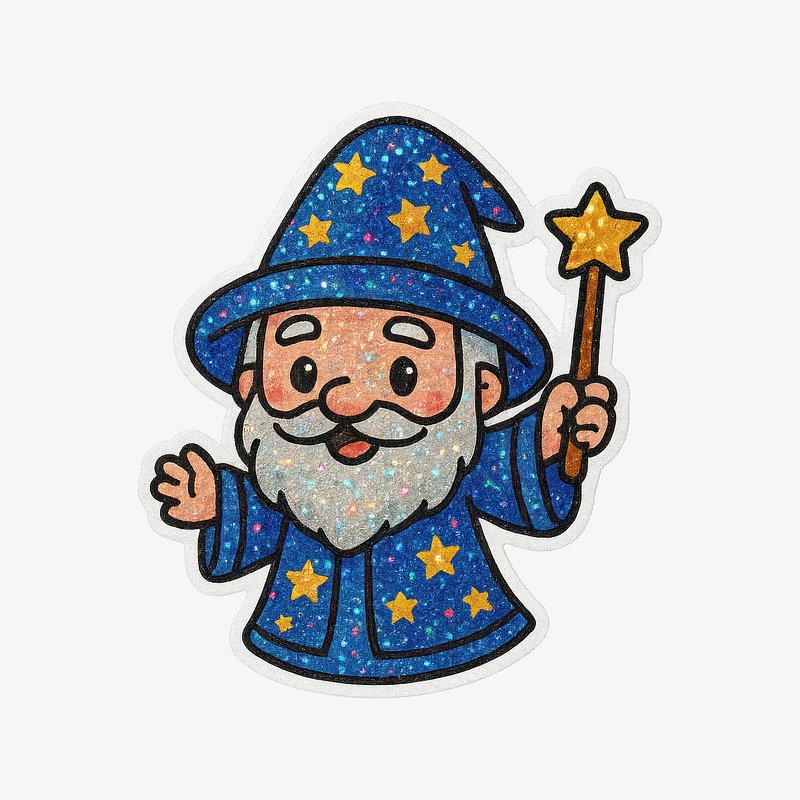 Glittery wizard cartoon illustration. https://www.rawpixel.com/image/23112612/glittery-wizard-cartoon-illustrationView license