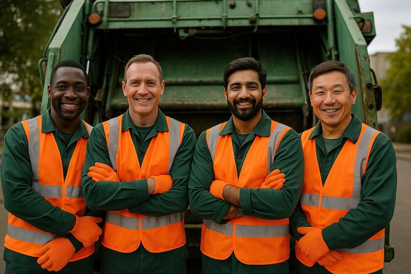 Diverse sanitation workers smiling https://www.rawpixel.com/image/17342641/diverse-sanitation-workers-smilingView license