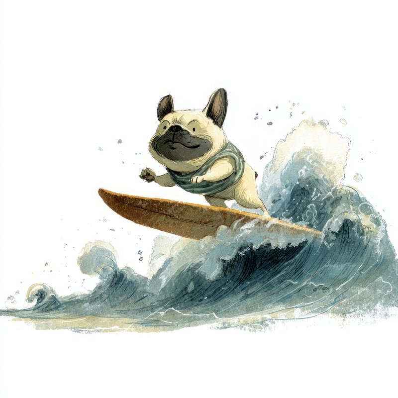 Pug surfing ocean waves joyfully. https://www.rawpixel.com/image/25427024/pug-surfing-ocean-waves-joyfullyView license