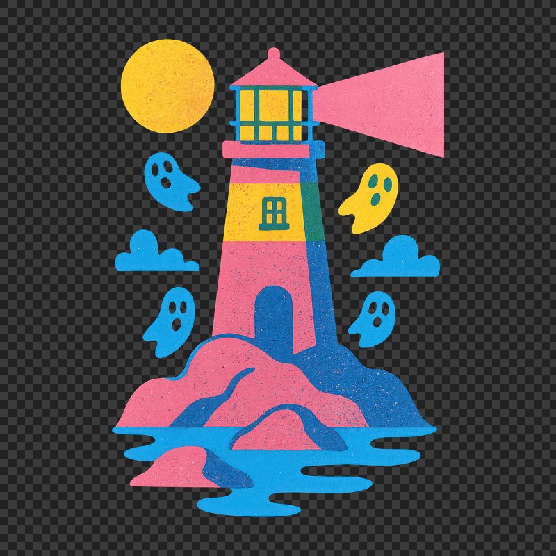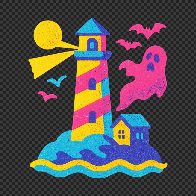 PNG Colorful spooky lighthouse illustration. https://www.rawpixel.com/image/21804726/png-colorful-spooky-lighthouse-illustrationView license