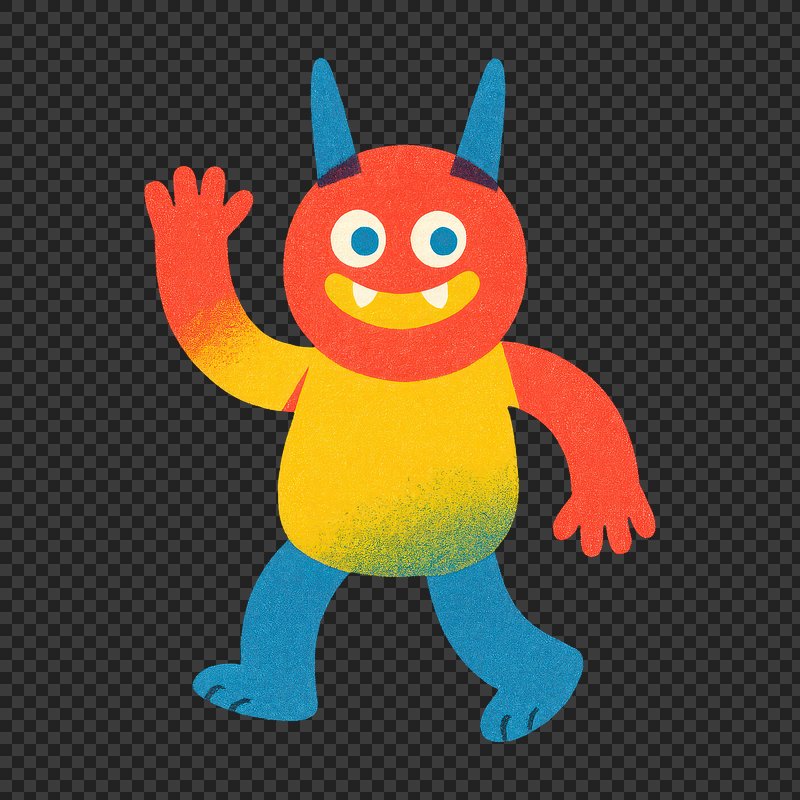 PNG Colorful cartoon monster waving https://www.rawpixel.com/image/21804732/png-colorful-cartoon-monster-wavingView license