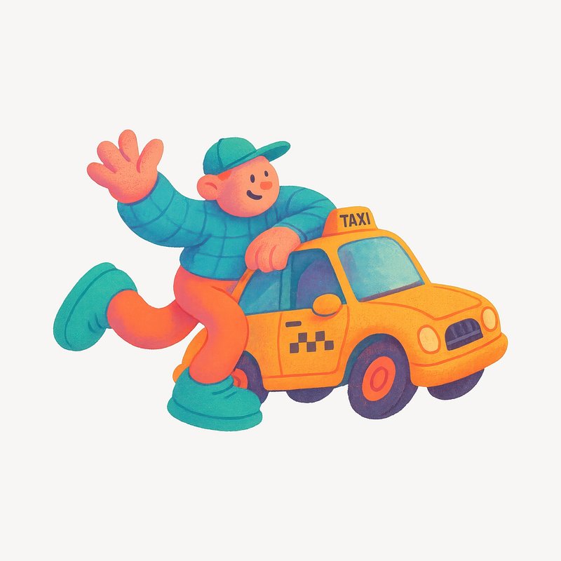 Playful cartoon taxi illustration. https://www.rawpixel.com/image/21793380/playful-cartoon-taxi-illustrationView license