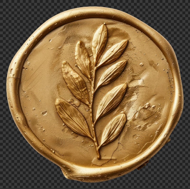 PNG Golden wax seal with laurel https://www.rawpixel.com/image/15351027/png-golden-wax-seal-with-laurelView license
