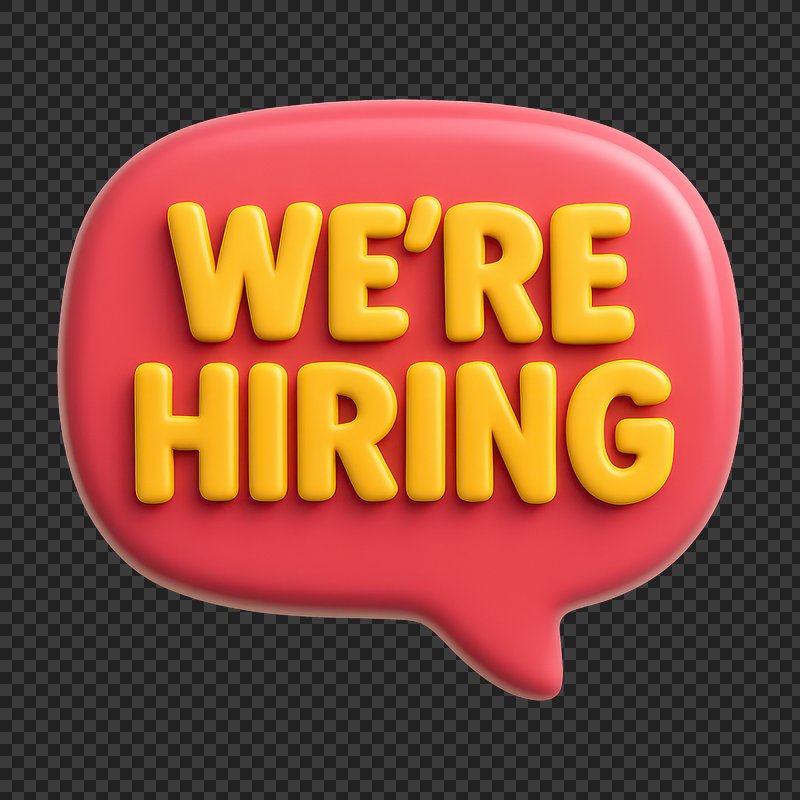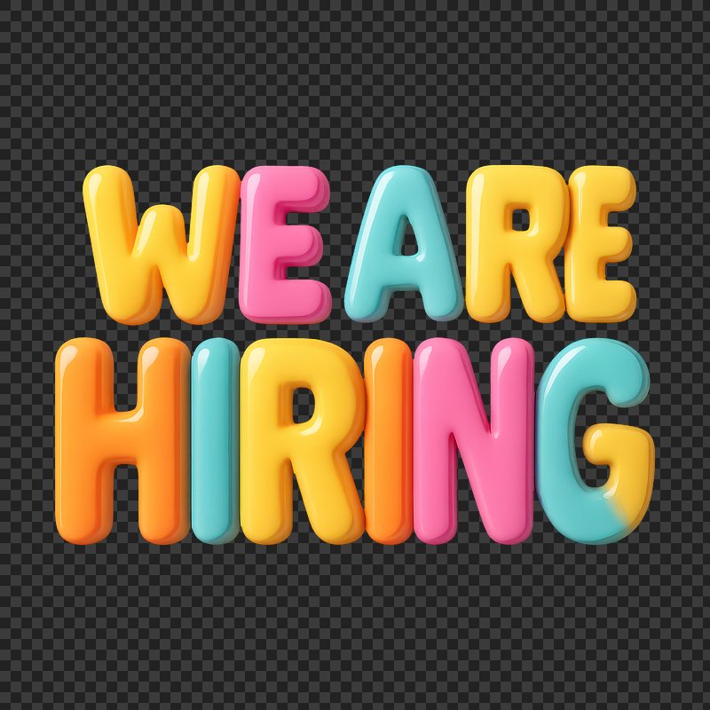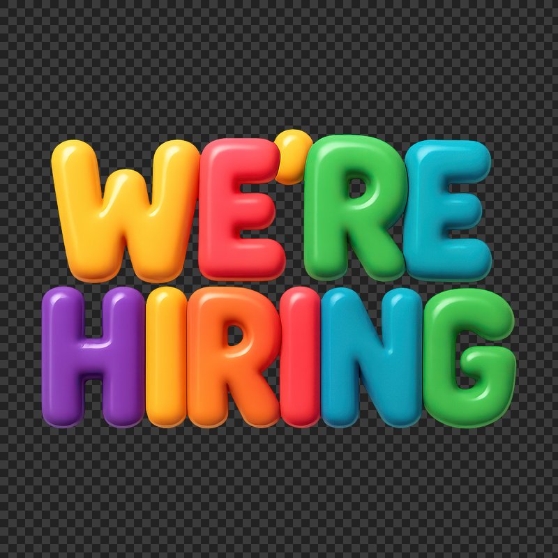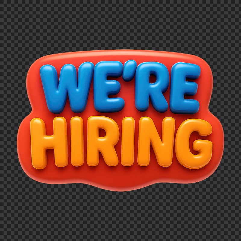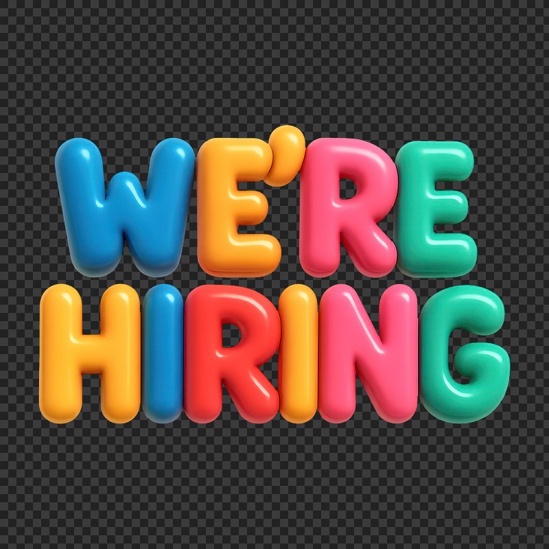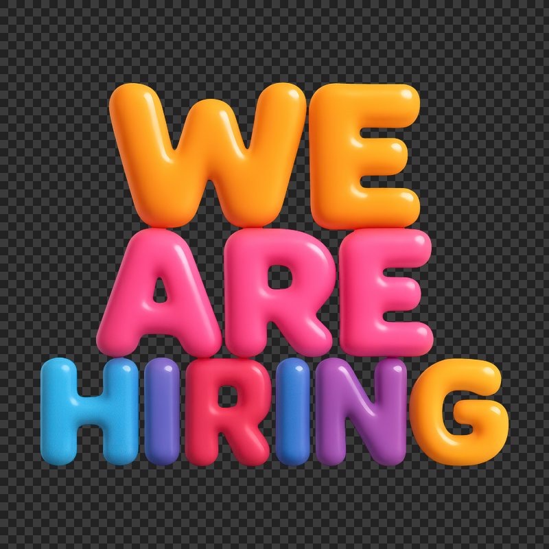 We're hiring png word art typography https://www.rawpixel.com/image/2495398/free-illustration-png-hiring-were-stickerView license