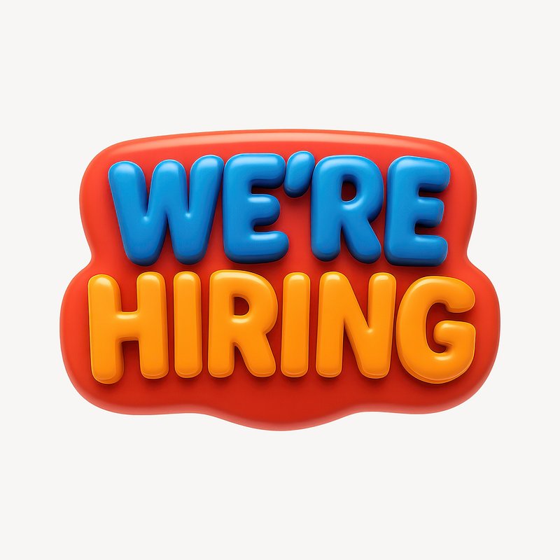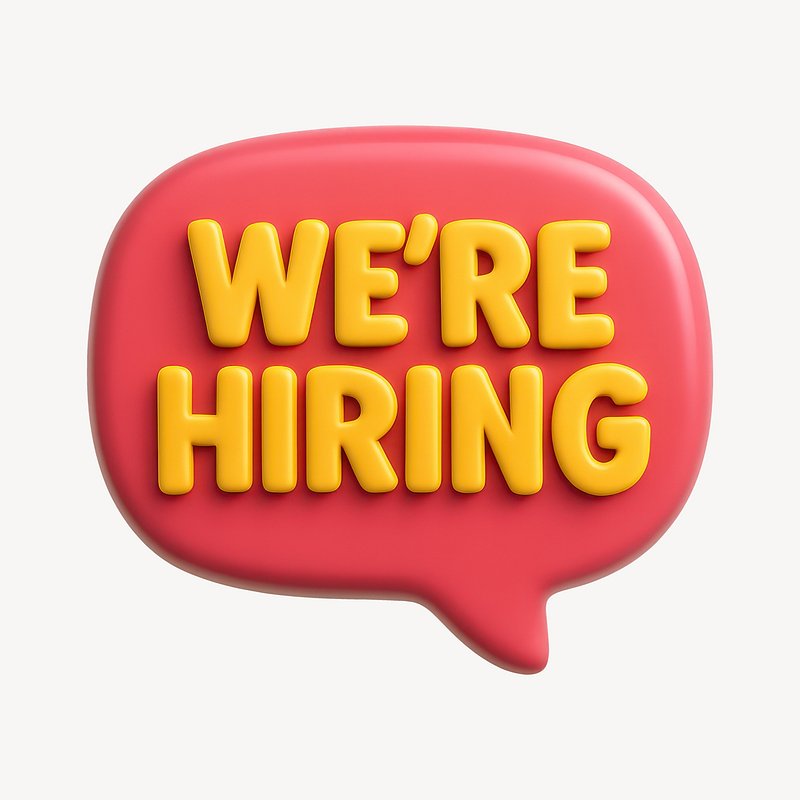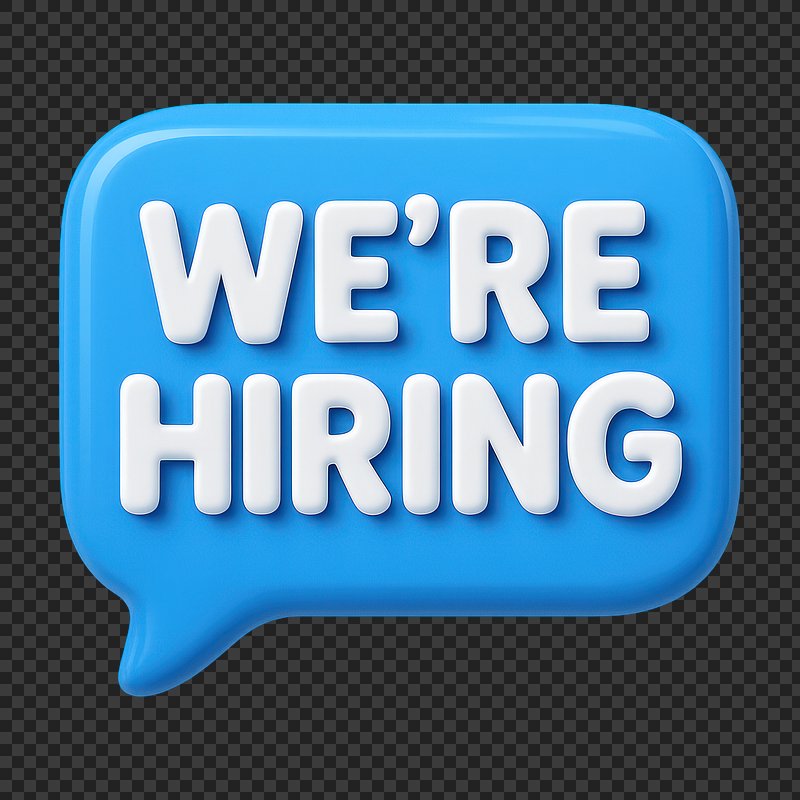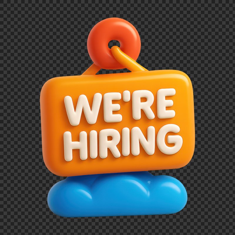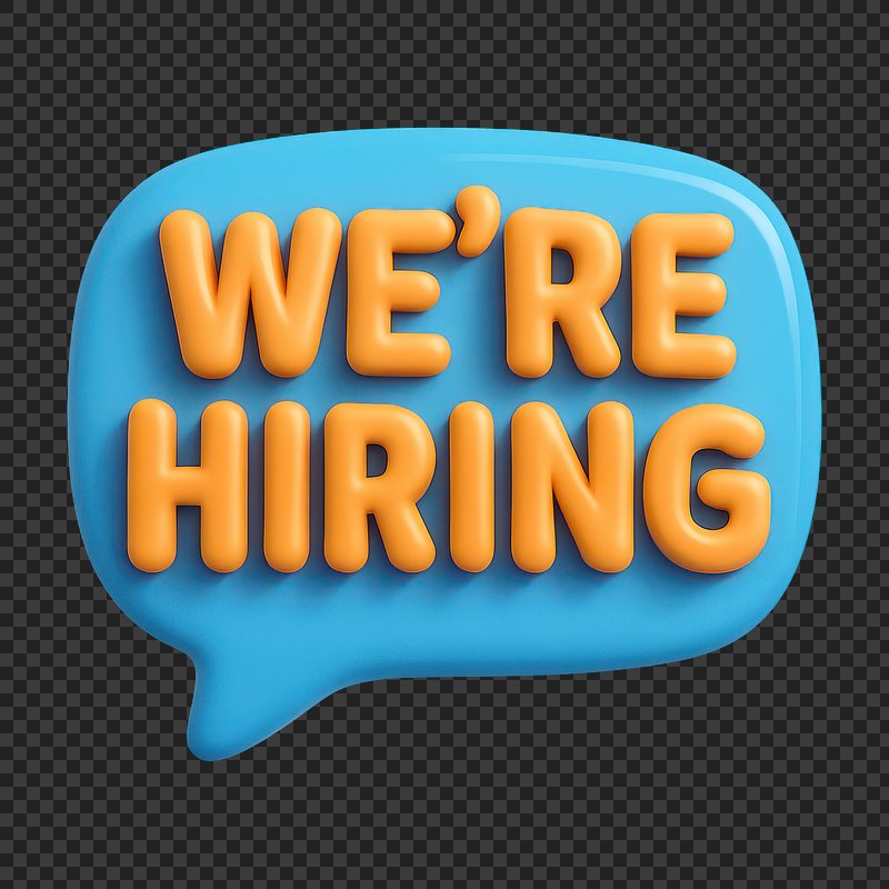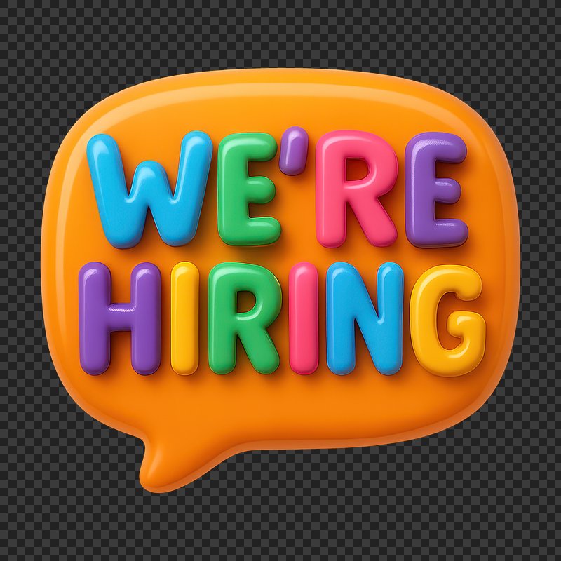 We're hiring png word art typography https://www.rawpixel.com/image/2495398/free-illustration-png-hiring-were-stickerView license