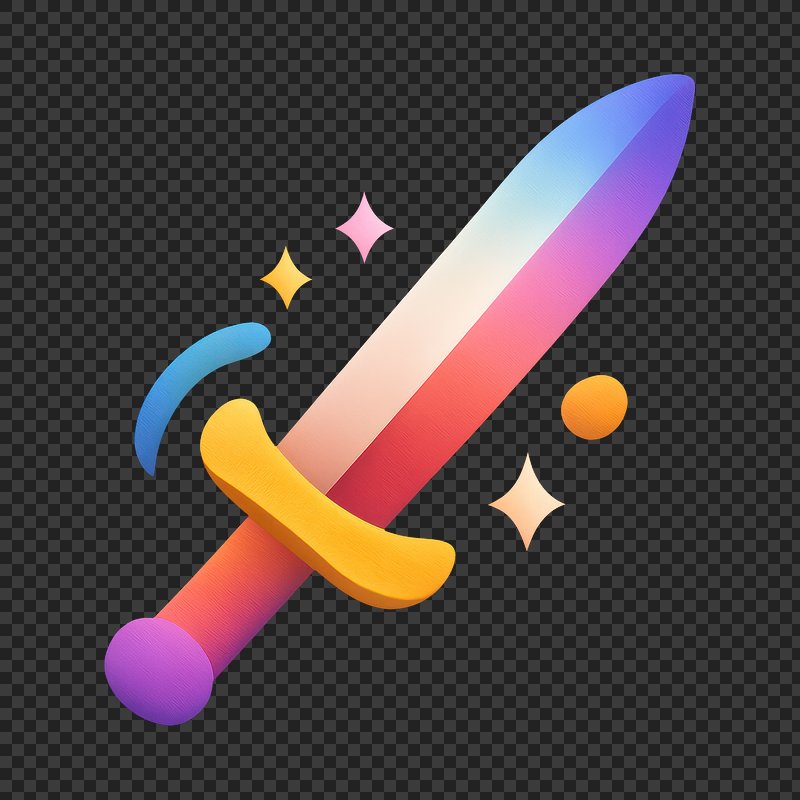 Colorful sword illustration with sparkles. https://www.rawpixel.com/image/25232608/colorful-sword-illustration-with-sparklesView license