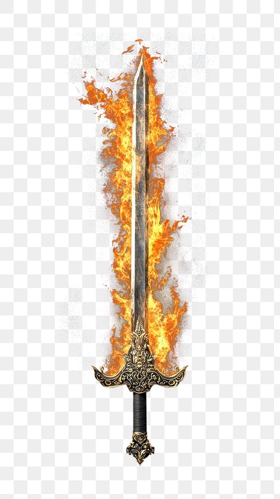 PNG Ornate sword flame weapon fire. https://www.rawpixel.com/image/17203998/png-ornate-sword-flame-weapon-fireView license