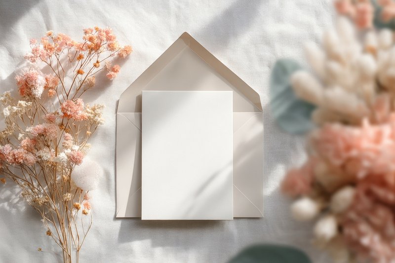 Floral minimalist wedding card mockup background invitation elegant. https://www.rawpixel.com/image/23675025/floral-minimalist-wedding-card-mockup-background-invitation-elegantView license