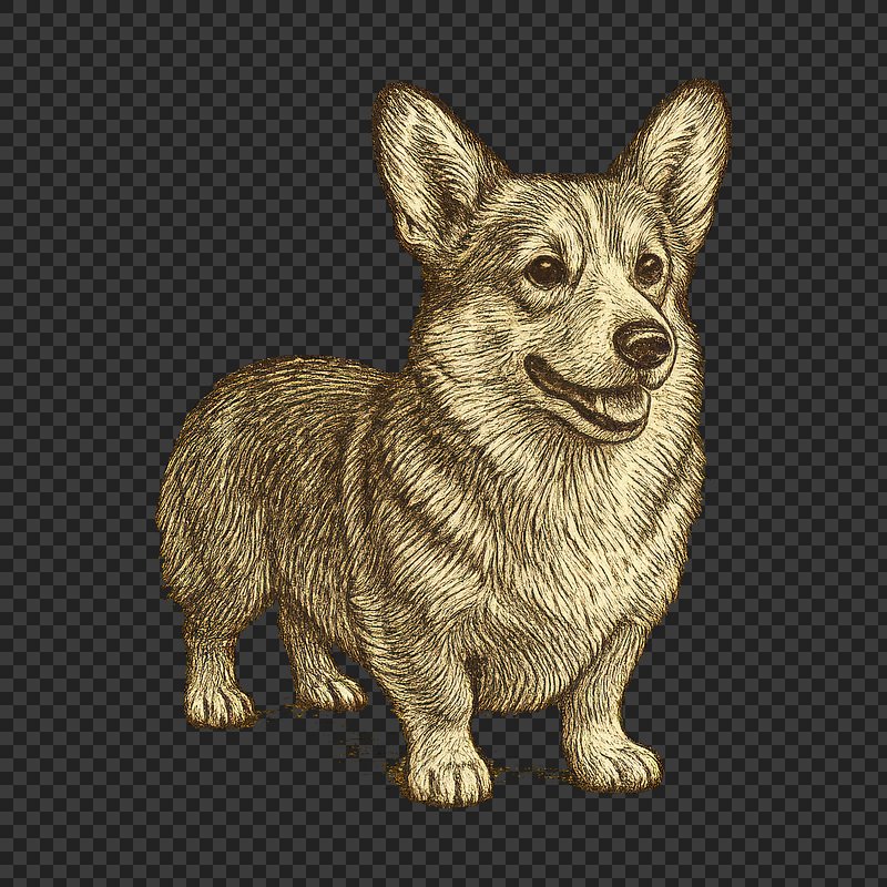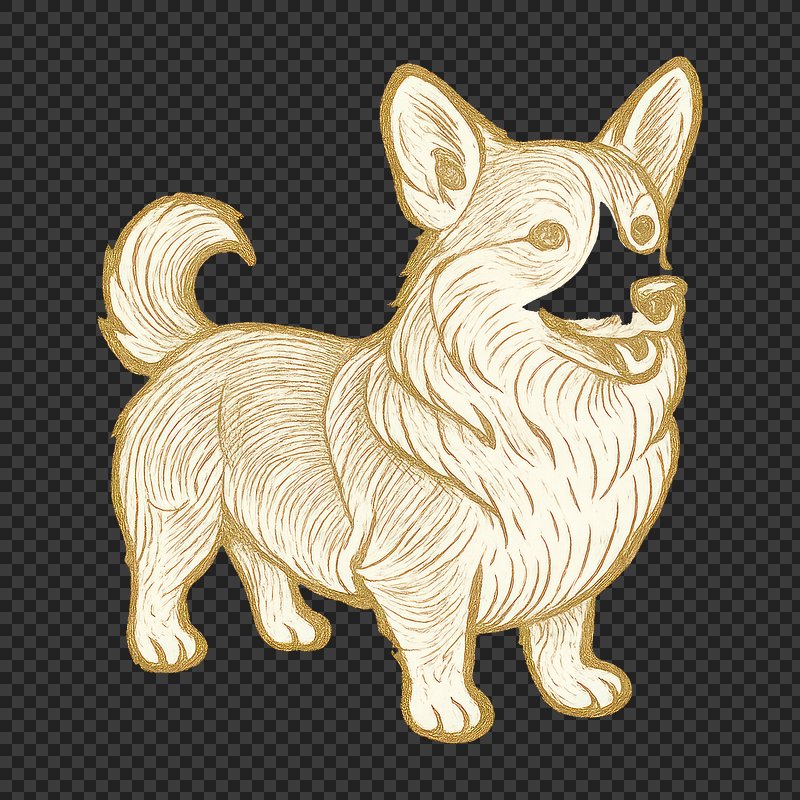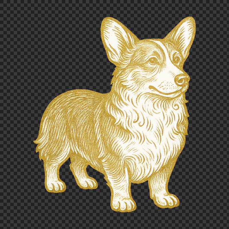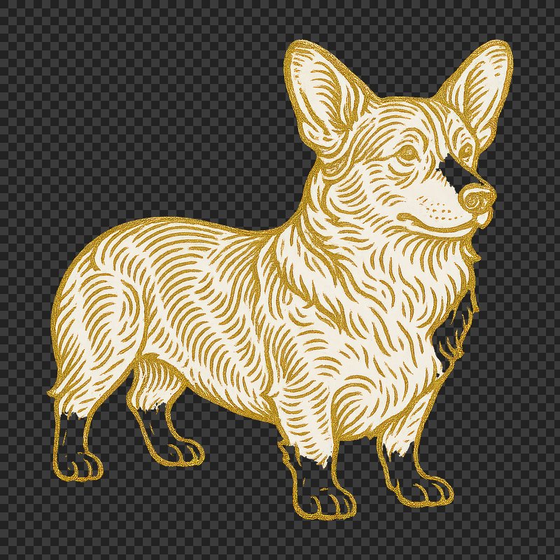 PNG Vintage corgi illustration in gold. https://www.rawpixel.com/image/24411586/png-vintage-corgi-illustration-goldView license