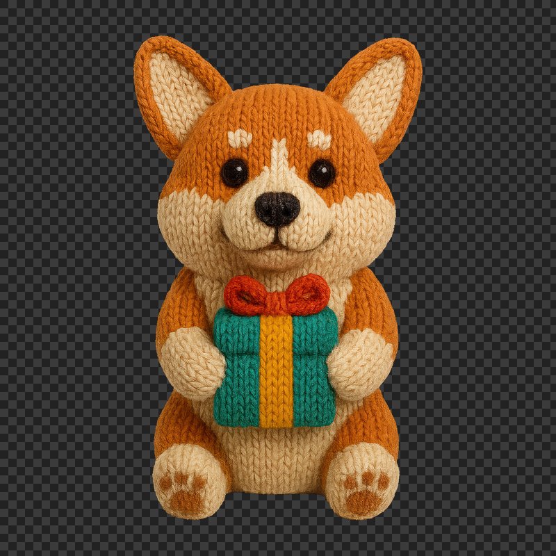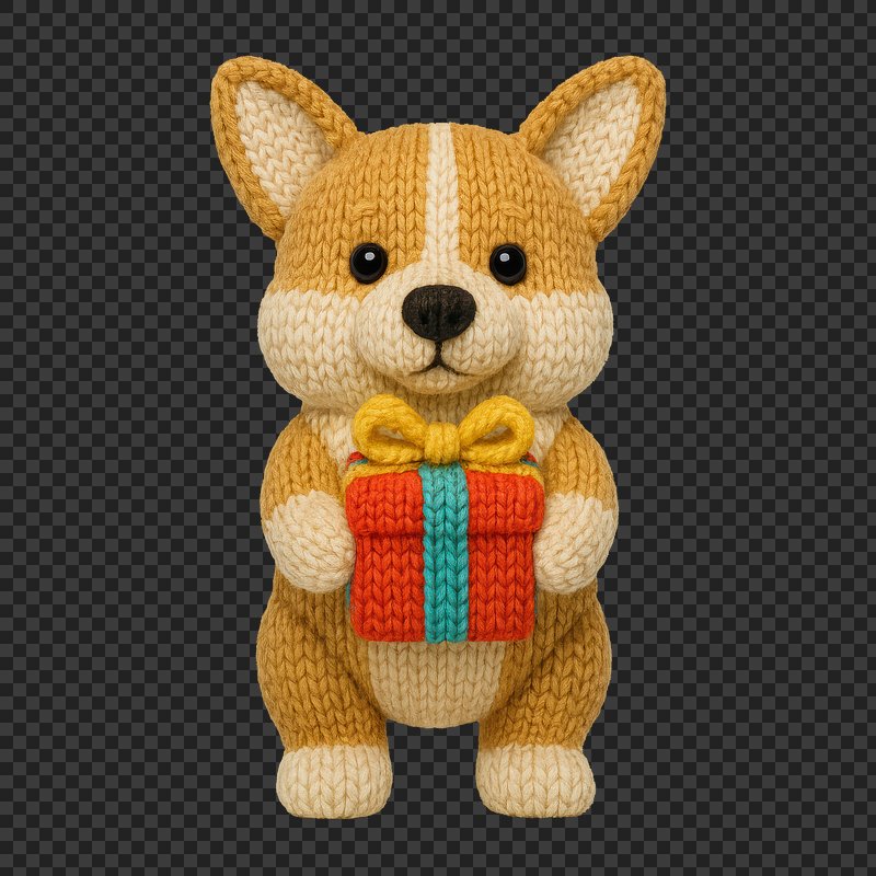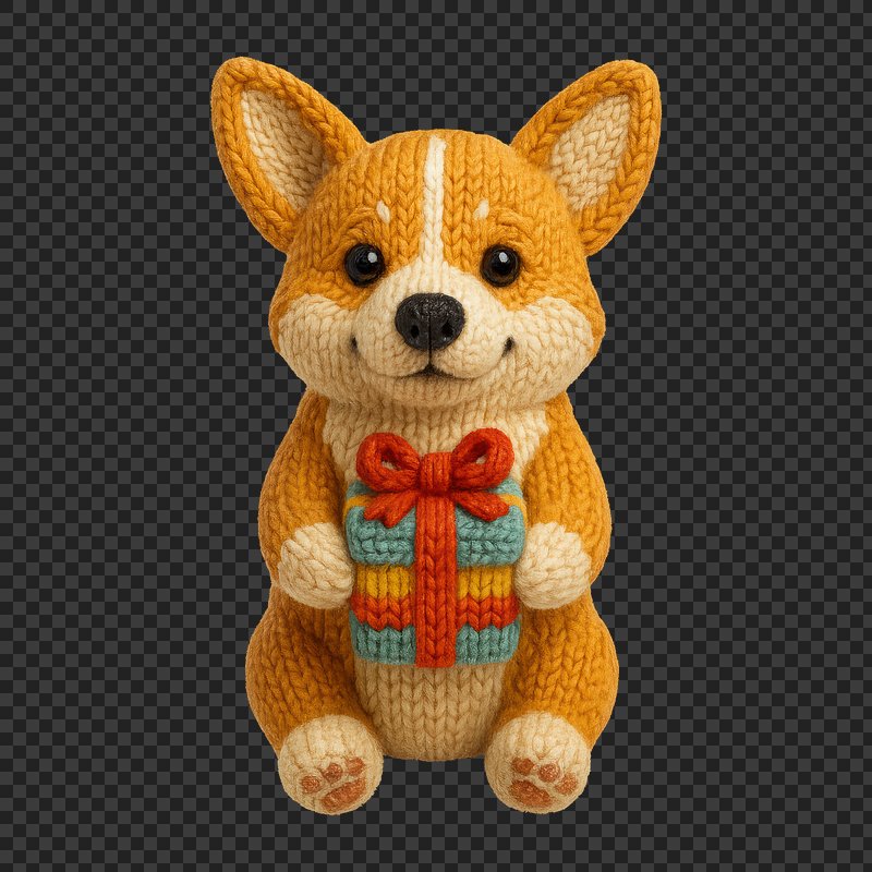 PNG Cute knitted corgi holding gift. https://www.rawpixel.com/image/24473780/png-cute-knitted-corgi-holding-giftView license