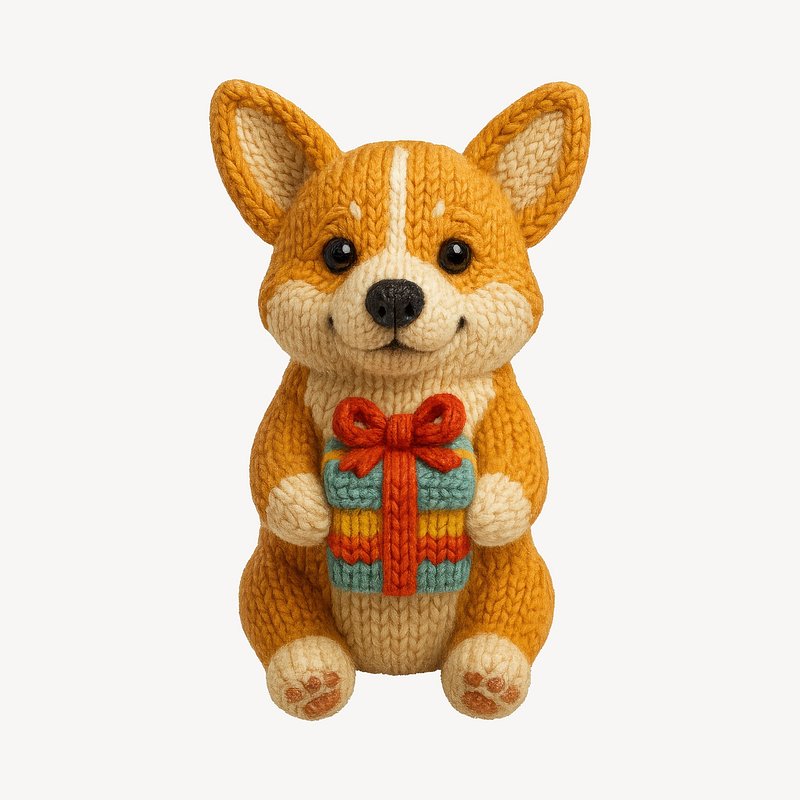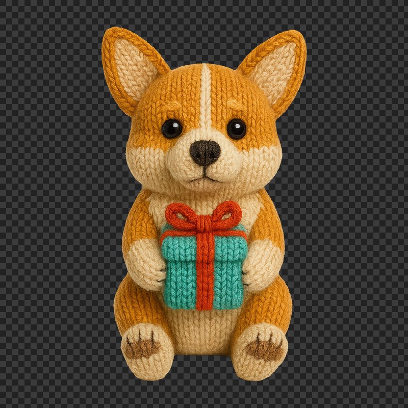 PNG Cute knitted corgi holding gift. https://www.rawpixel.com/image/24473807/png-cute-knitted-corgi-holding-giftView license
