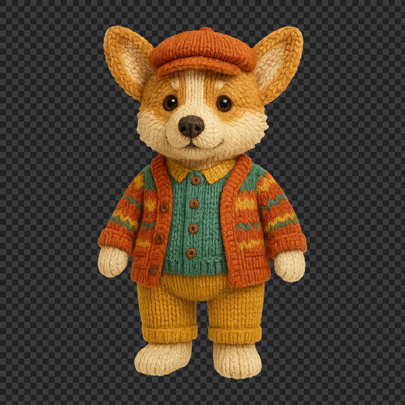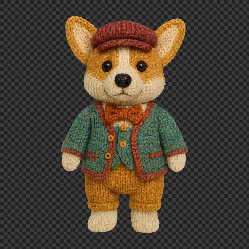 PNG Cute knitted corgi toy illustration. https://www.rawpixel.com/image/24477310/png-cute-knitted-corgi-toy-illustrationView license
