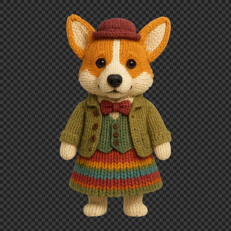 PNG Charming knitted corgi character https://www.rawpixel.com/image/24477309/png-charming-knitted-corgi-characterView license