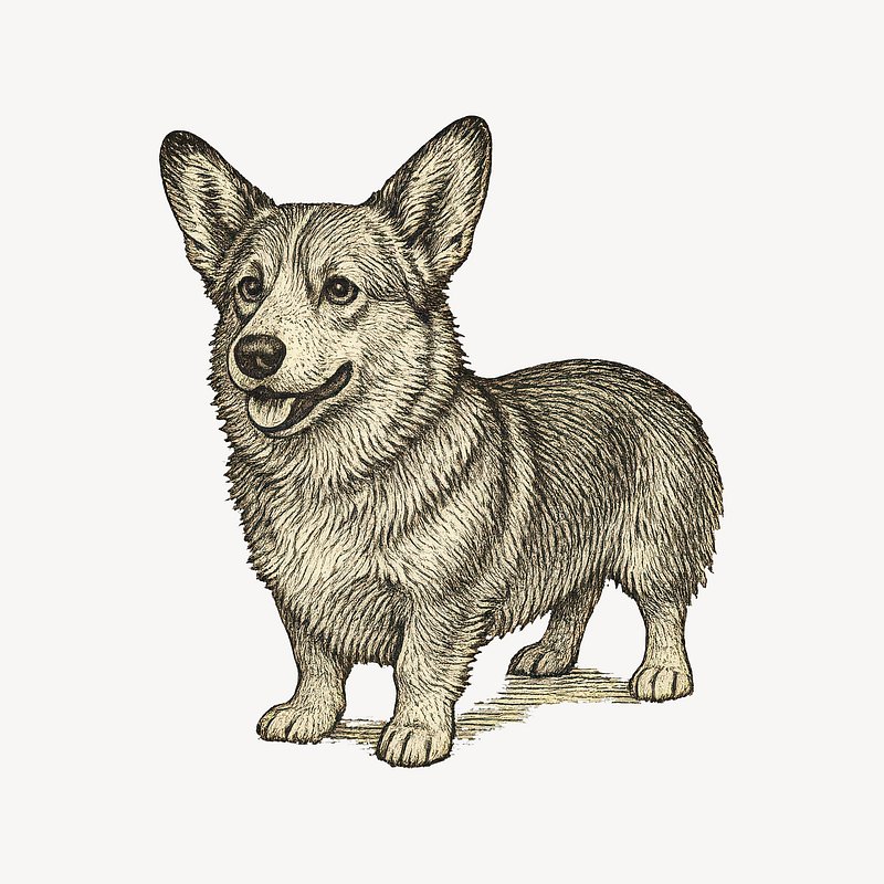 Charming corgi illustration, vintage style. https://www.rawpixel.com/image/24569749/charming-corgi-illustration-vintage-styleView license