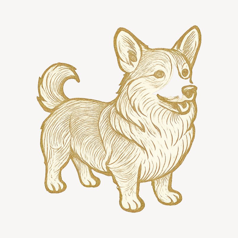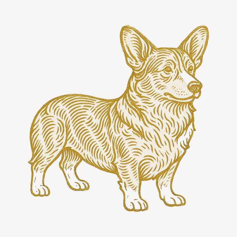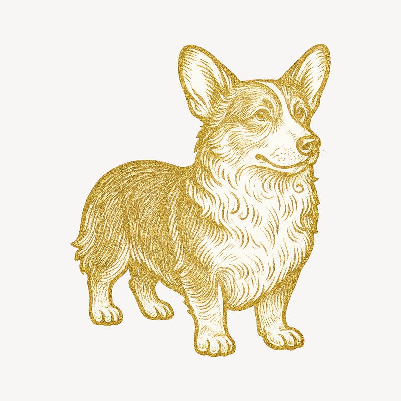 Vintage corgi illustration in gold. https://www.rawpixel.com/image/24575211/vintage-corgi-illustration-goldView license