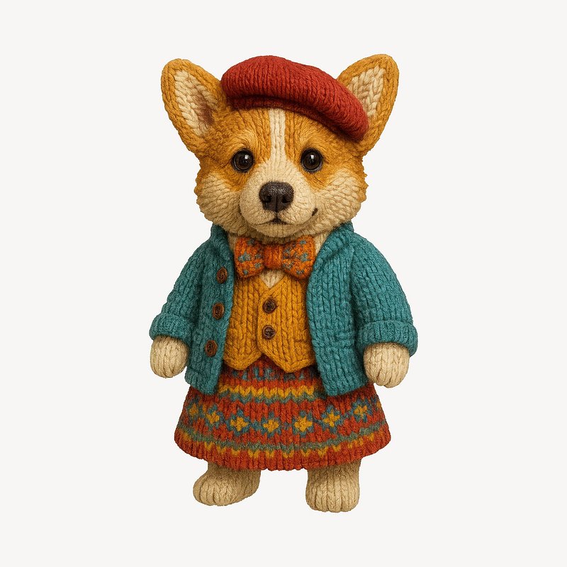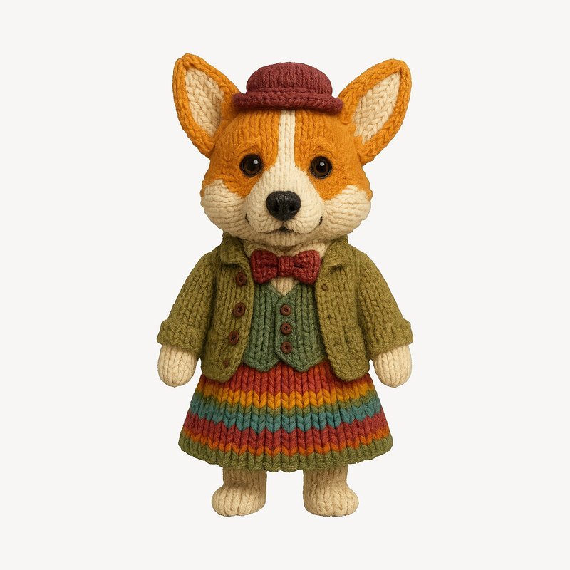 Charming knitted corgi character https://www.rawpixel.com/image/24658571/charming-knitted-corgi-characterView license