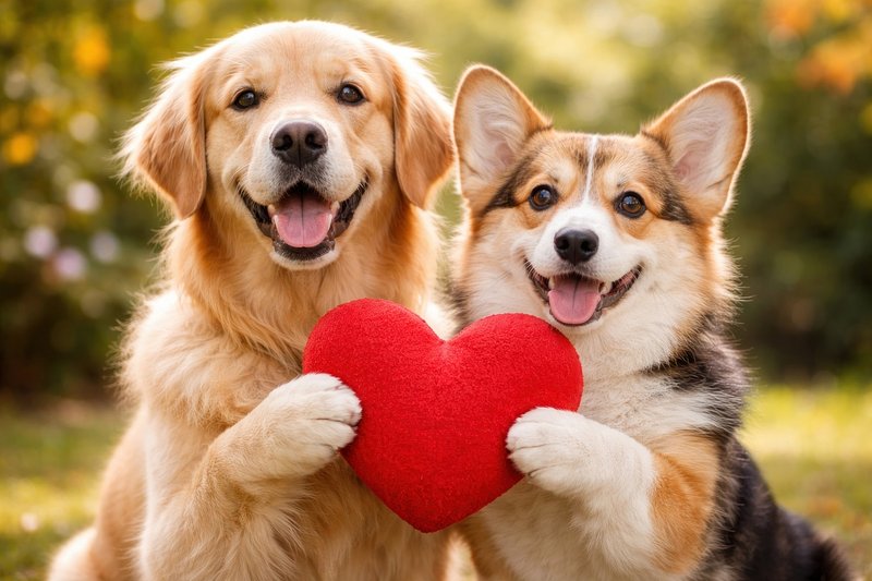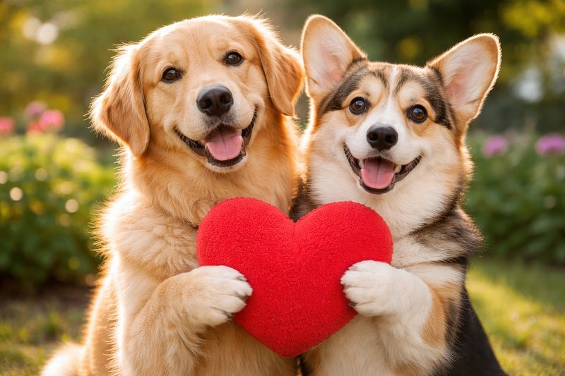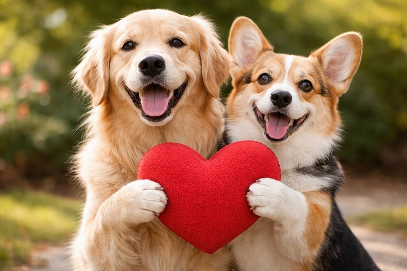 Happy dogs holding heart. https://www.rawpixel.com/image/25267060/happy-dogs-holding-heartView license