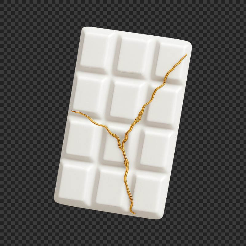 PNG White chocolate with golden crack https://www.rawpixel.com/image/22197974/png-white-chocolate-with-golden-crackView license
