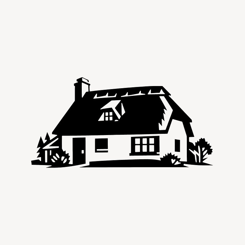 Charming cottage silhouette illustration. https://www.rawpixel.com/image/25625636/charming-cottage-silhouette-illustrationView license