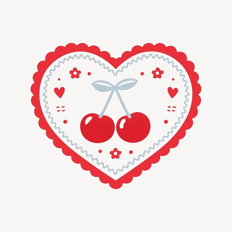 Cute cherry heart illustration https://www.rawpixel.com/image/25146701/cute-cherry-heart-illustrationView license