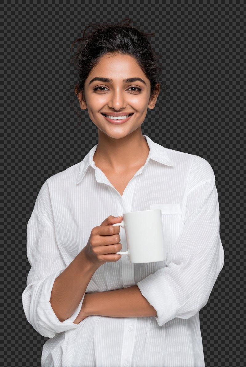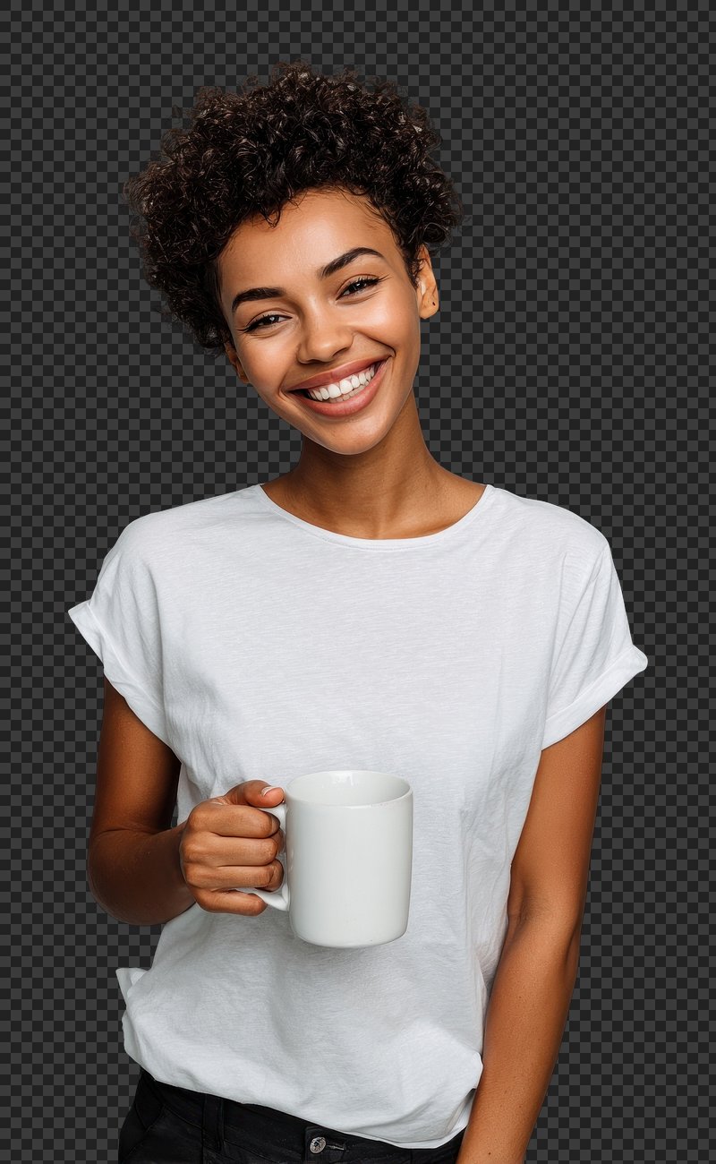 PNG Smiling woman holding white mug. https://www.rawpixel.com/image/20891613/png-smiling-woman-holding-white-mugView license