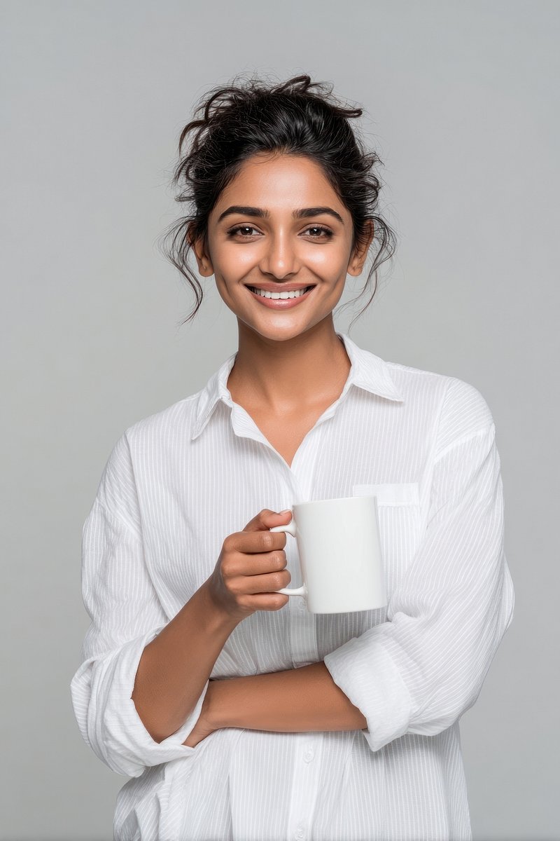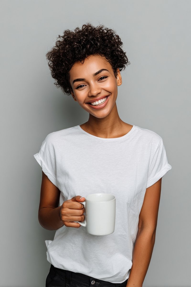 Smiling woman holding white mug. https://www.rawpixel.com/image/20561583/smiling-woman-holding-white-mugView license