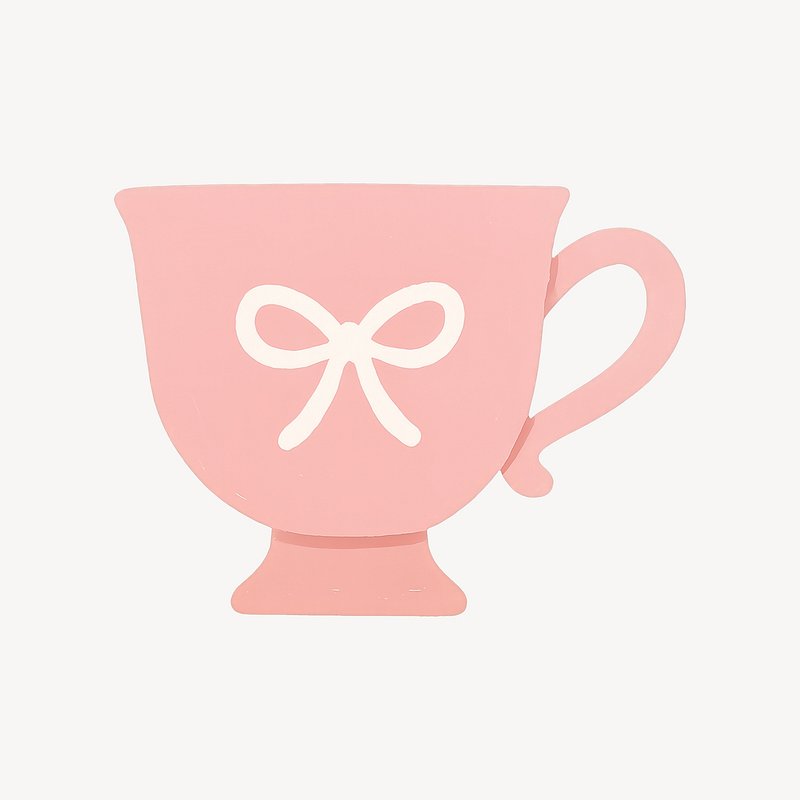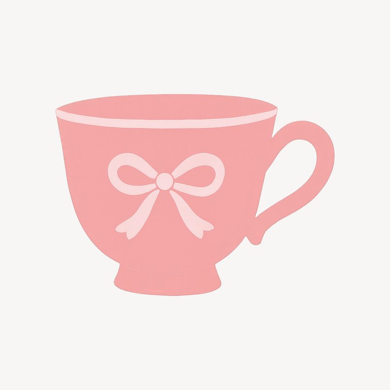 Pink teacup with bow illustration. https://www.rawpixel.com/image/21521469/pink-teacup-with-bow-illustrationView license