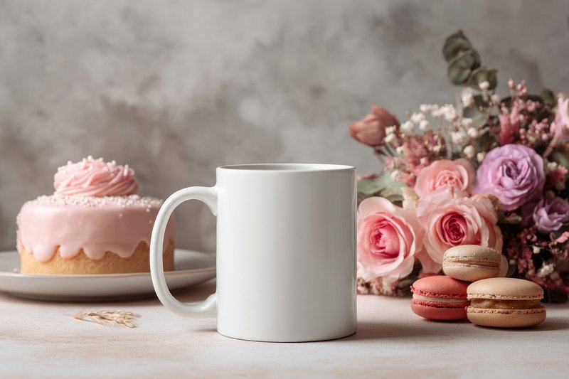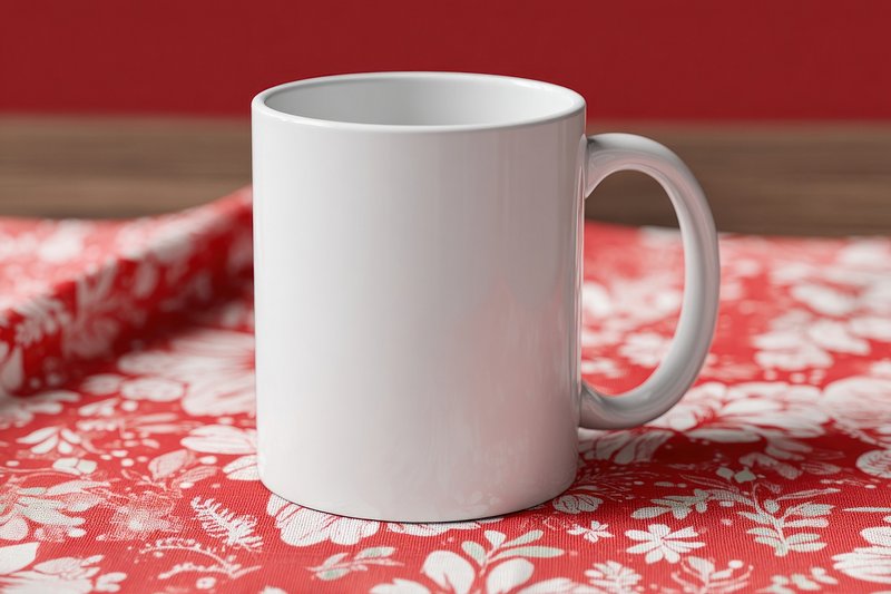 Blank mug on floral fabric https://www.rawpixel.com/image/23783142/blank-mug-floral-fabricView license