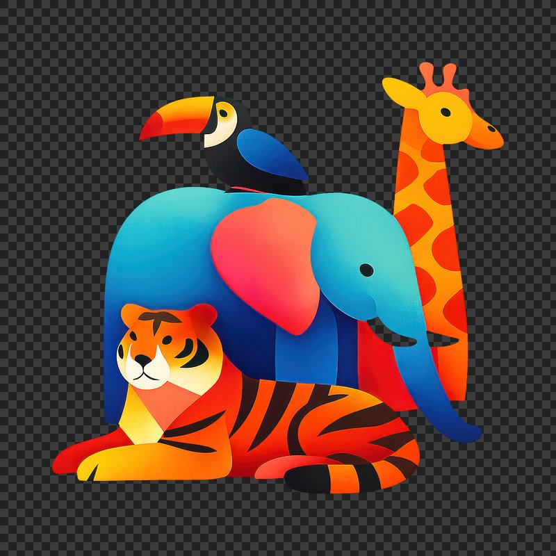 PNG Colorful jungle animal illustration. https://www.rawpixel.com/image/25208138/png-colorful-jungle-animal-illustrationView license