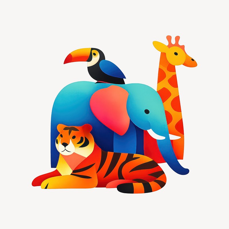 Colorful jungle animal illustration. https://www.rawpixel.com/image/25232930/colorful-jungle-animal-illustrationView license