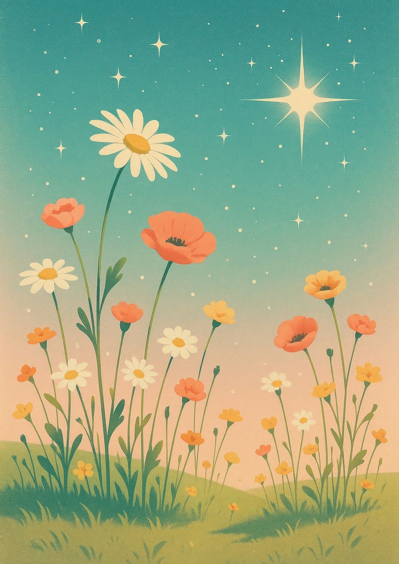 Whimsical floral starry night https://www.rawpixel.com/image/20397695/whimsical-floral-starry-nightView license